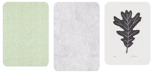 종이 위 목재 도장을 찍었을 때의 텍스처, 완벽하게 선명히 찍히지 않고 비균일하게 희끗희끗하게 하여 배경과의 약한 대비감을 표현한다.